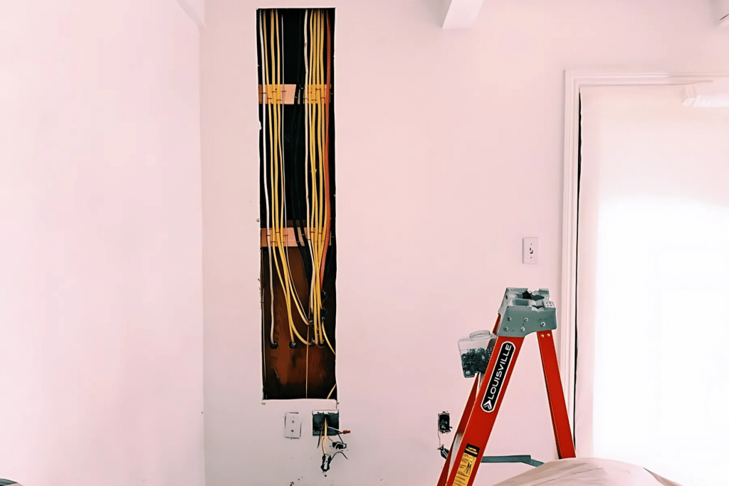 For safety, please find a temporary home while we do the rewiring. This is not a DIY project. Open walls and electrical work can be dangerous. A temporary place to stay will keep your home and family safe.